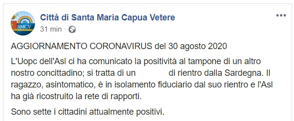 Questo quanto pubblicato dal Comune di SMCV