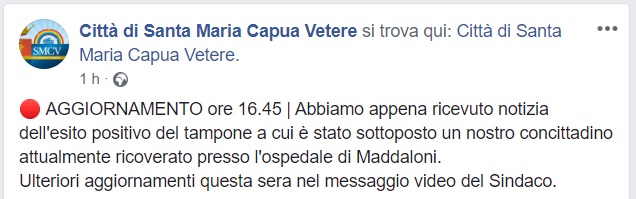 Questo quanto apprendiamo dalla pagina FB del Comune di SMCV