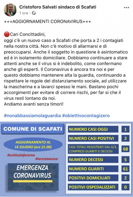Questo quanto comunicato dal Sindaco di Scafati