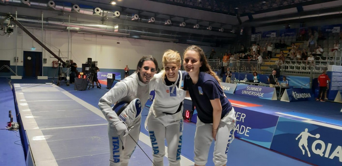 "La quinta giornata dedicata alla scherma all’Universiade Estiva Napoli 2019, sulle pedane del PalaUnisa, regala all'Italia la terza medaglia d'oro, con il trionfo della squadra di fioretto femminile. Entusiasmo, applausi scroscianti e tricolori che sventolano sulle tribune, ancora una volta gremite al campus di Baronissi, alla 45esima stoccata azzurra nella sofferta e combattuta finale vinta contro la Russia.-spiega la nota-L'Italia delle fiorettiste, con Erica Cipressa (reduce dall’oro individuale), Camilla Mancini (bronzo lo scorso venerdì) e Martina Sinigalia, aveva debuttato nei quarti di finale superando 45-21 gli Usa, poi in semifinale il successo contro la Cina con lo stesso punteggio, infine la vittoria per 45-38 sulle russe che è valsa la medaglia d'oro.-spiega la nota-"È un sogno vincere due ori in questa Universiade, sono felicissima perché li ho voluti fortemente. Dedico questa bella doppietta a me stessa. Ora un po' di meritate vacanze e poi mi concentrerò sulla prossima stagione", commenta Erica Cirpressa. Così Martina Sinigalia: "Abbiamo avuto un piccolo calo in finale contro la Russia ma restando insieme, giocando di squadra, siamo riuscite a vincere". La chiosa di Camilla Mancini: "Un oro e un bronzo, archivio con il sorriso un'Universiade davvero soddisfacente".-spiega la nota-Per l'Italia sono ora 11 le medaglie conquistate (3 d'oro, 3 d'argento e 5 di bronzo) all'Universiade Napoli2019 che si chiuderà domani con le prove a squadre di firoetto maschile e sciabola femminile."