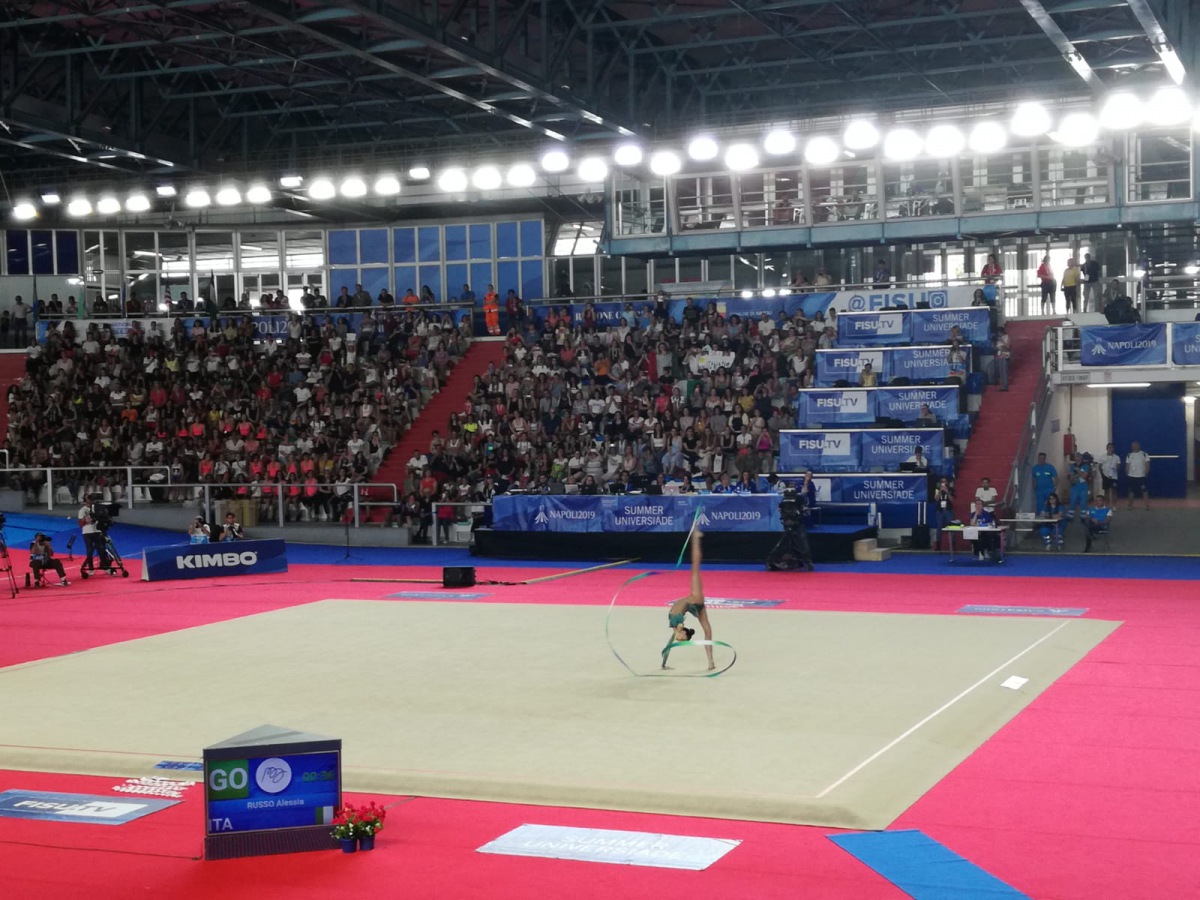 "Lacrime di gioia per Alessia Russo al termine dell’esibizione col nastro. L’atleta azzurra ha chiuso al secondo posto alle spalle della fuoriclasse russa Ekaterina Selezneva, autentica star con 4 ori e un bronzo nel torneo di ginnastica ritmica, in un PalaVesuvio in delirio. Terza classificata l’ucraina Eva Meleschuk.-spiega la nota-La 22enne toscana, alla sua prima Universiade, non nasconde l’emozione per il secondo gradino del podio: “Sono contentissima, per me è stata una gara difficile: tra cerchio e nastro ho avuto tre ore di pausa in cui mantenere la concentrazione sempre alta. Mi aspettavo una medaglia di bronzo e alla fine ho portato a casa l’argento. Il calore del pubblico del PalaVesuvio mi ha fatto venire i brividi e mi sono emozionata. Tornerò sicuramente a Napoli”.-spiega la nota-Il PalaVesuvio, sold out anche per le finali di oggi, ha ospitato l’ultima giornata della ritmica ai Giochi Universitari, dopo le gare dell’artistica dei giorni precedenti. -spiega la nota-L’Italia ha regalato agli spettatori dell’impianto di Ponticelli ben quattro podi: oltre all’argento con Alessia Russo, tre medaglie nell’artistica con il bronzo a squadre per Carlotta Ferlito, Lara Mori e Martina Rizzelli, l’argento per Lara Mori alla trave e l’oro per Carlotta Ferlito nel corpo libero.