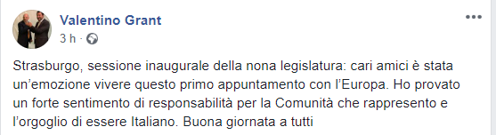Questo il post pubblicato sulla bacheca Facebook del parlamentare europeo casertano Valentino Grant: