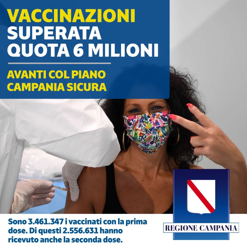 "COVID19, #VACCINAZIONI: IN CAMPANIA 6 MILIONI DI SOMMINISTRAZIONI"
