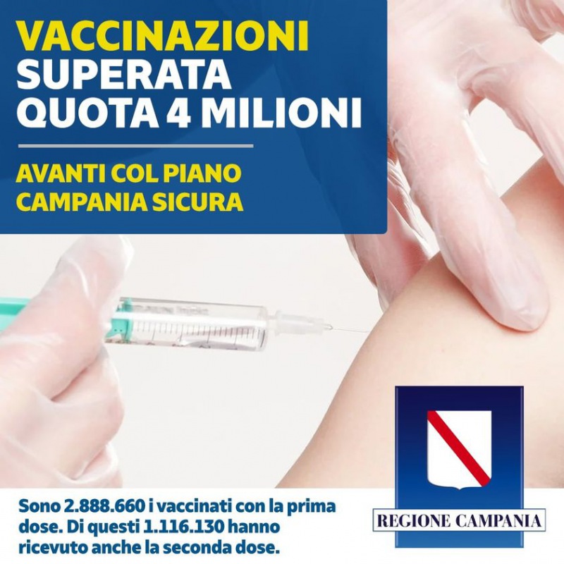 "#COVID19, #VACCINAZIONI: IN CAMPANIA 4 MILIONI DI SOMMINISTRAZIONI"