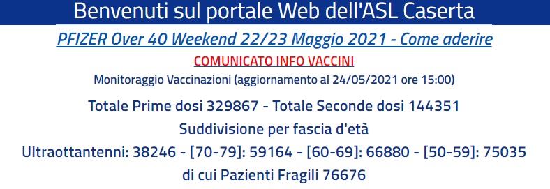 Questo il dato sui vaccini dell'Asl di Caserta:
