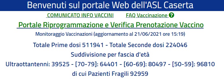 Questo il dato sui vaccini dell'Asl di Caserta: