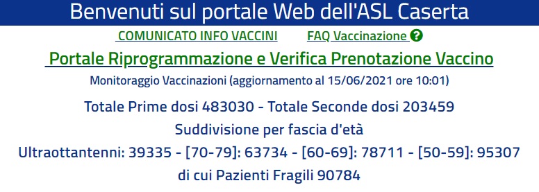 Vaccinazione Covid Prov. Ce. Poco più di 483mila prime dosi somministrate, più di 203mila le seconde