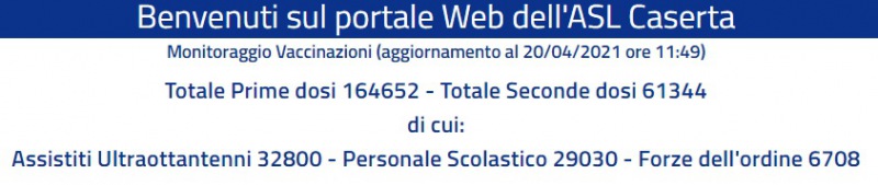 Questo il dato sui vaccini appreso dal sito dell'Asl di Caserta