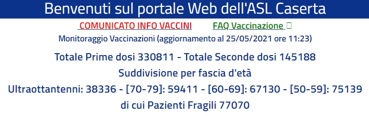 Queto il dato sui vaccini dell'Asl di Caserta: