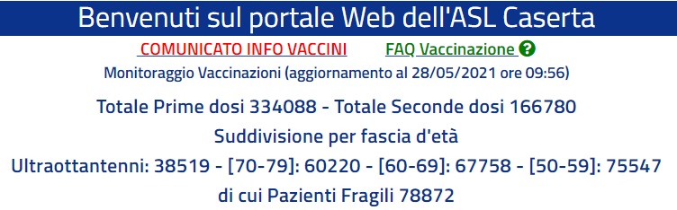 Questo il dato sui vaccini dell'Asl di Caserta