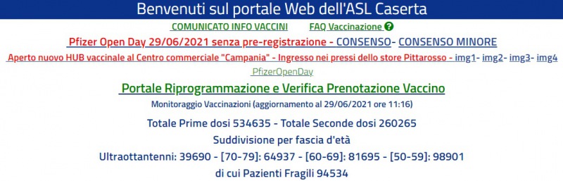 Questo il dato sui vaccini dell'Asl di Caserta: