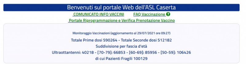 Vaccinazioni Covid Prov. Ce. Più di 590mila prime dosi somministrate, circa 512mila le seconde