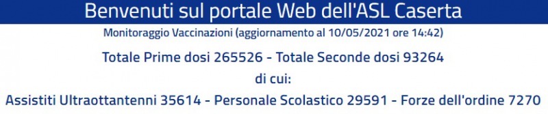 Vaccinazioni Covid Prov. Ce. Sono più di 265mila le prime dosi somministrate, più di 93mila le seconde