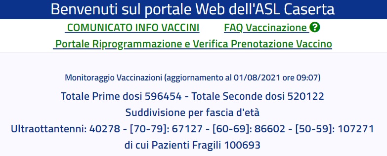 Questo il dato sui vaccini dell'Asl di Caserta: