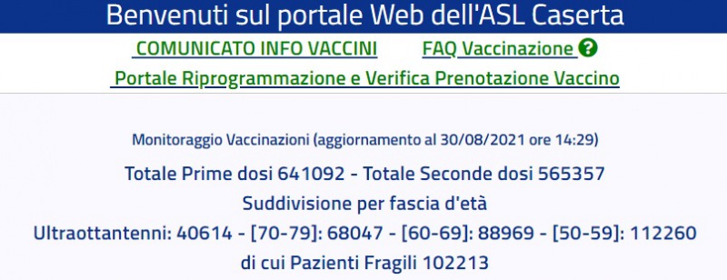 Questo il dato sui vaccini dell'Asl di Caserta