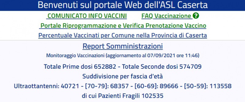 Questo il dato sui vaccini dell'Asl di Caserta