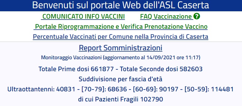 Vaccinazioni Prov. Ce. Oltre 661mila prime dosi somministrate, i dettagli