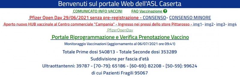 Questo il dato sui vaccini dell'Asl di Caserta:
