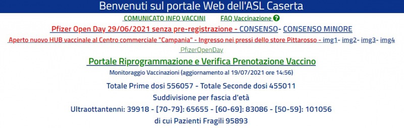 Questi il dato sui vaccini dell'Asl di Caserta: