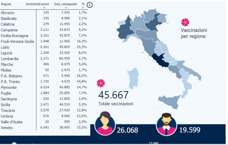 Questi i dati diffusi dal Governo sulla somministrazione dei vaccini anti Coronavirus