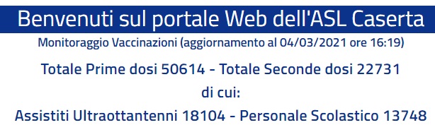 Sono 18104 i vaccini somministrati in Provincia di Caserta agli Ultraottantenni, e 13748 quelli al Personale Scolastico.