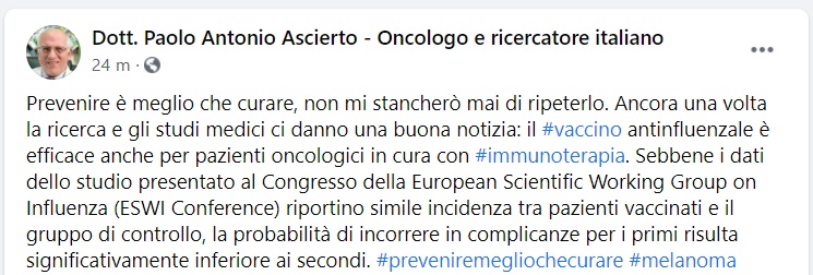 Questo quanto pubblicato sulla pagina fb del dott. Ascierto