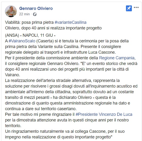 Questo quanto pubblicato dagli On.li Graziano e Oliviero