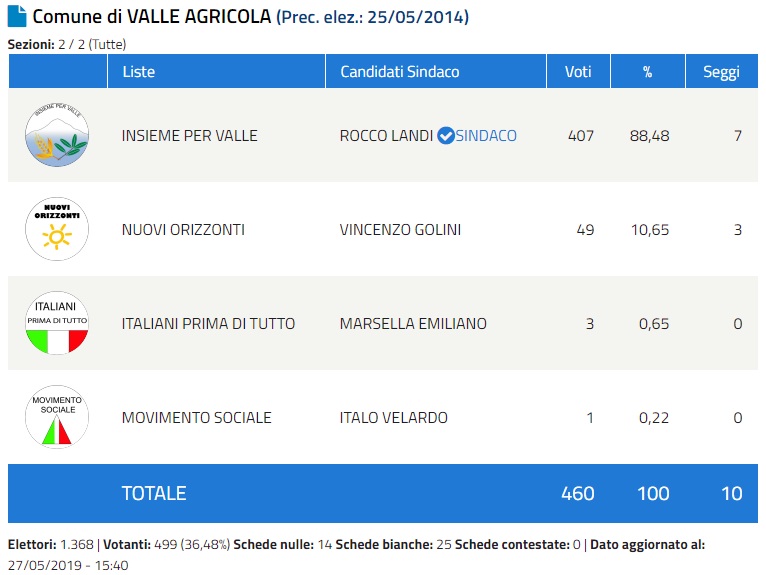 Rocco Landi è stato eletto Sindaco di Valle Agricola. Complimenti e in bocca al lupo