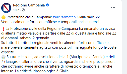Questo parte del post pubblicato sulla pagina Facebook della Regione Campania