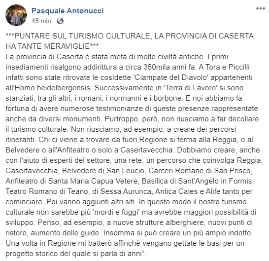 Questo quanto pubblicato sulla pagina facebook del candidato alle Regionali Antonucci: