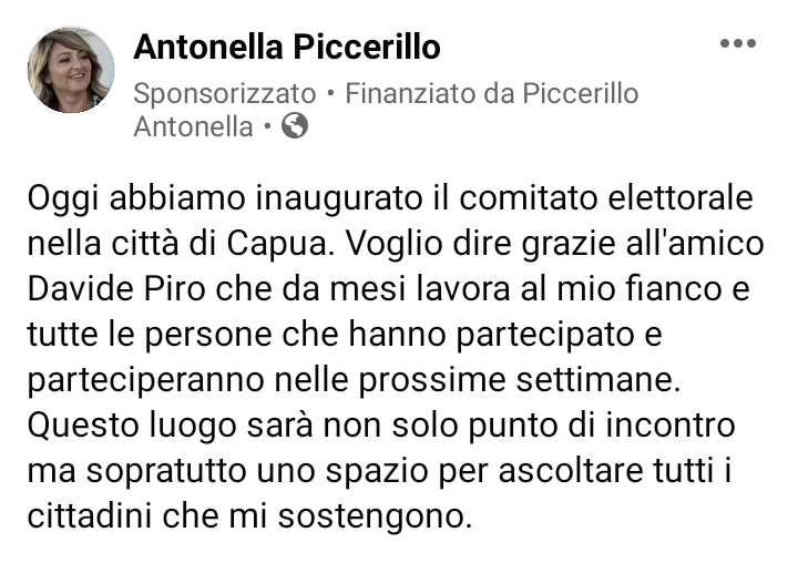 Questo quanto pubblicato dalla candidata Antonella Piccerillo