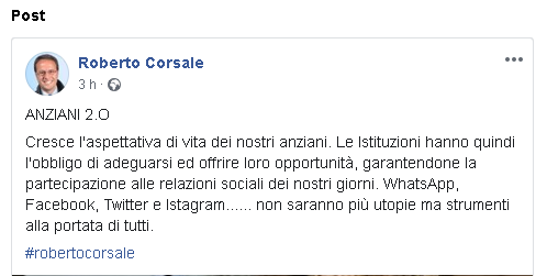 Lo apprendiamo dalla pagina Facebook di Roberto Corsale, ex Sindaco di Casagiove e candidato a Consigliere Regionale, con la lista 'De Luca Presidente'.