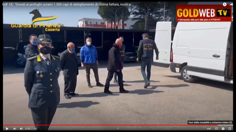 Video. GdF CE: "Donati ai profughi ucraini 1.300 capi di abbigliamento di ottima fattura, nuovi e mai indossati"