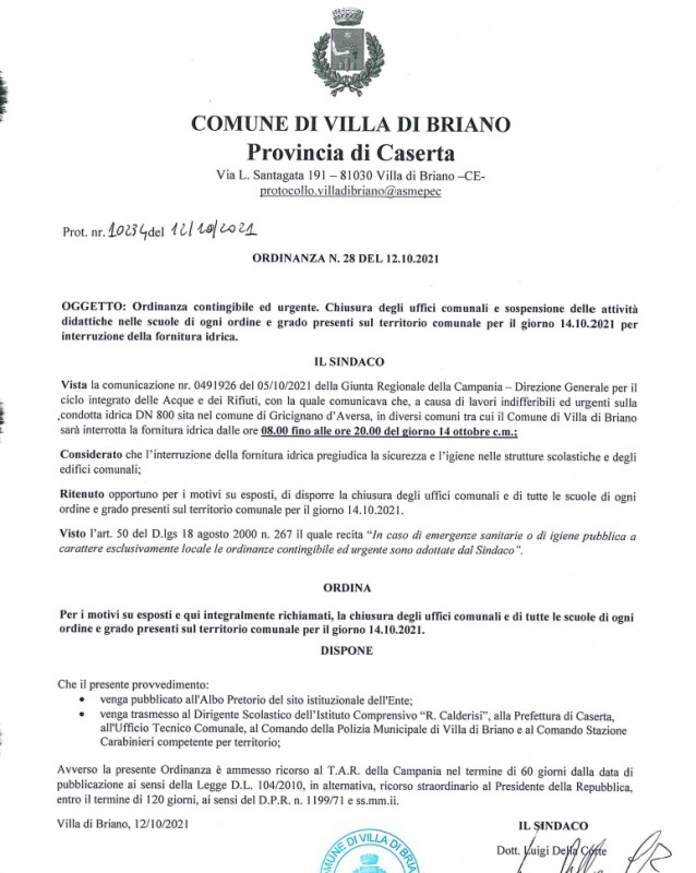 Questo quanto apprendiamo dal sito del Comune di Villa di Briano: