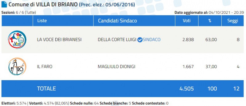 Concluso lo scrutinio a Villa di Briano, e Luigi Della Corte è stato eletto Sindaco.