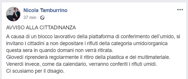Questo quanto comunicato dal Sindaco di Villa Literno Nicola Tamburrino.