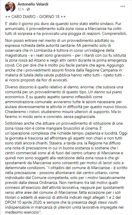 Questo quanto pubblicato sulla pagina fb del Sindaco Velardi